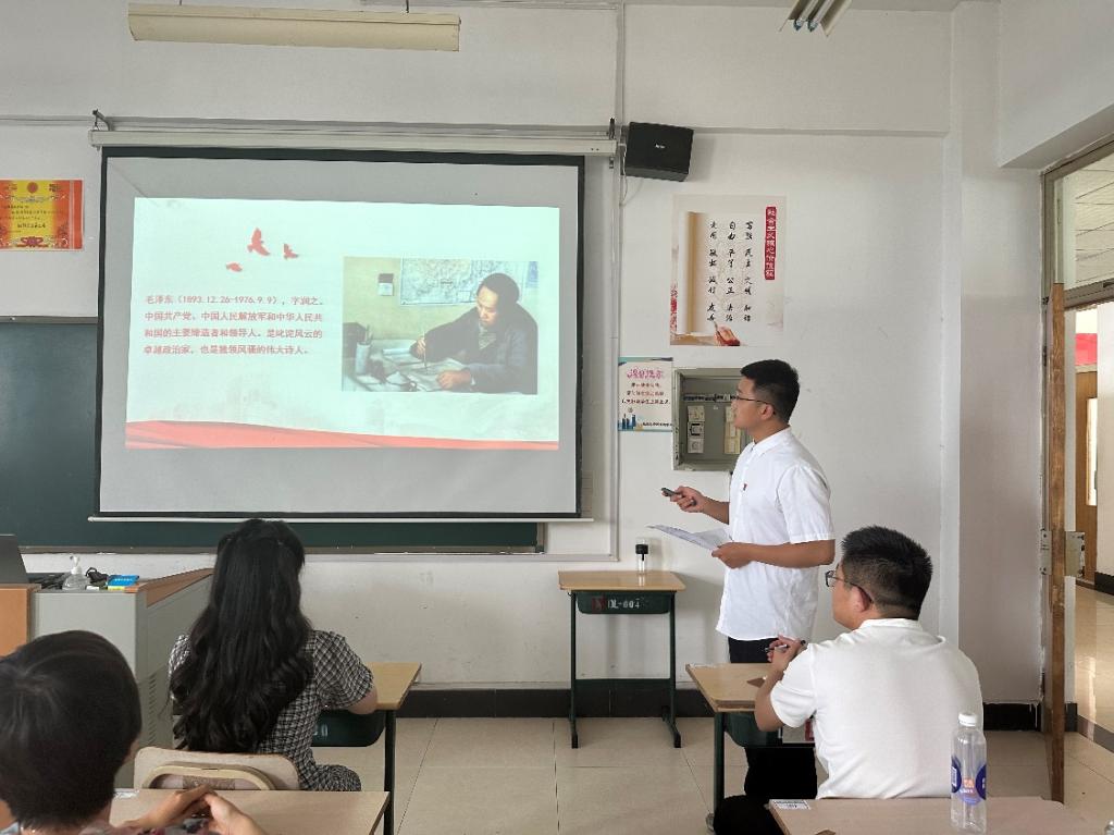 专题党课以“毛泽东诗词中的党史”为题,重点讲解了1910年秋毛泽东离开韶山冲探求救国救民之路到1935年10月到达陕北延安吴起镇期间,毛泽东创作的诗词及其中蕴含的党史。如写于1910年秋的《七绝•改诗赠父亲》中“孩儿立志出乡关,学不成名誓不还。埋骨何须桑梓地,人生无处不青山”,表达了青年毛泽东学有所成的决心和好男儿志在四方的人生追求;创作于1925年的《沁园春•长沙》抒发了毛泽东对中华民族前途的乐观主义精神和以天下为己任的豪情壮志;而《西江月•秋收起义》则描写了1927年秋收起义后,在革命异常艰苦的关头工农革命武装暴动的壮举,毛泽东的诗风开始由写景抒情转入纪实、走向战争;《渔家傲•反第一次大“围剿”》写于1931年4月红军成功粉碎国民党第一次大“围剿”之后、第二次大“围剿”进攻之时,毛泽东和朱德采取诱敌深入,集中优势兵力,运动战、速决战和歼灭战各个击破敌人等战术,使反“围剿”出奇制胜,以少胜多,以弱胜强,先后取得了第二次、第三次和第四次反“围剿”的胜利;1934年7月23日凌晨,受到接连错误打击和排挤、改做地方工作的毛泽东登上会昌山顶峰,写下《清平乐•会昌》,展现了毛泽东身处逆境而又百折不挠、积极乐观、昂扬向上的伟人风范,表明他对革命充满憧憬,黑暗即将过去,曙光正在前方;《忆秦娥•娄山关》的创作背景是1935年2月,惨败湘江以来长征途中的第一场大胜仗——娄山关大捷之后,从内到外生动地描写了红军指战员征战娄山关、从拂晓出发到傍晚结束战斗的紧张激烈场景。一句“雄关漫道真如铁,而今迈步从头越”道出了毛泽东对革命道路的冷静思索,不要说群山雄关像钢铁一般难以逾越,而如今让英勇的红军重振旗鼓向前,表现出了毛泽东和英勇红军面对艰难从容不迫的气度和博大胸怀;1935年10月19日,中央红军跳出敌人包围圈、翻越雪山、走出人迹罕至的草地,到达陕北延安吴起镇,回顾长征一年来所战胜的无数艰难险阻时,毛泽东满怀喜悦地写下了《七律•长征》。