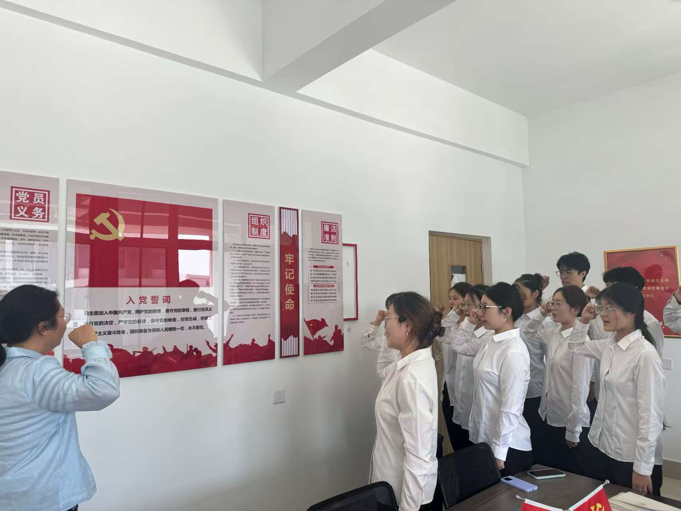 活动伊始,主讲人首先介绍本次入党宣誓活动的筹备情况与意义,并郑重宣读参与宣誓的党员名单,每一个名字都承载着沉甸甸的责任与光荣。随后,在员工党支部书记邵园园的带领下,全体党员高举右拳、面向党旗庄严宣誓,铿锵有力的誓言不仅是对共产主义事业的坚定承诺,也是践行初心使命与矢志跟党走的坚定宣告。最后,主讲人特别强调,员工党员要紧密结合学习、工作和生活实际发挥党员先锋模范作用,奋力成长为堪当民族复兴大任的时代新人,以实际行动夯实公司党建工作根基,推动党建引领育人工作走深走实,为培养担当民族复兴大任的时代新人注入红色动能。