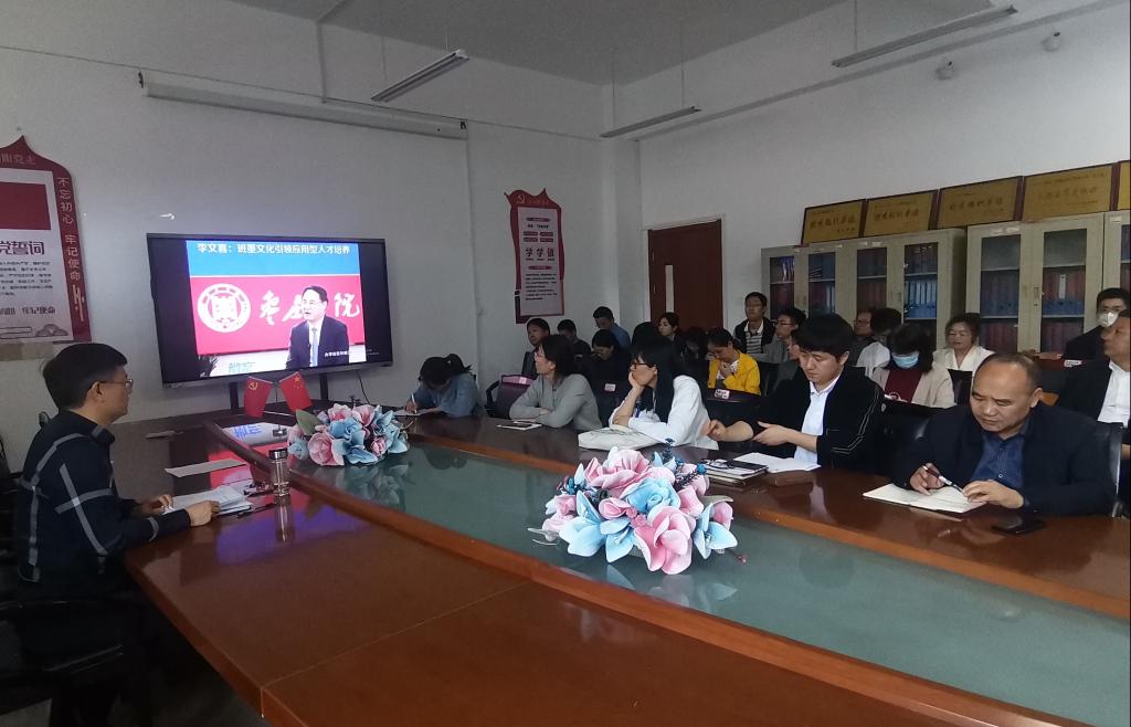 此次教研活动由伟德国际victor1946经理王满堂主持。全体专任教师首先学习了《伟德国际victor1946“班墨+”文化育人工程项目建设实施方案》,随后观看了山东教育电视台《教育1+1》栏目李文喜董事长的专访视频。教研活动紧紧围绕实施方案中的构建多学科“班墨+”课程体系,拓展多特色“班墨+”课堂教学体系,构建多样化“班墨+”文化育人体系,健全多层次“班墨+”实践活动体系以及打造“班墨+”卓越匠心人才培养机制进行了深入讨论。专任教师就如何结合专业、课程特色和课堂教学实际,不断深化课程改革、课堂教学改革开展“班墨+”文化育人工作纷纷发表了意见和建议。