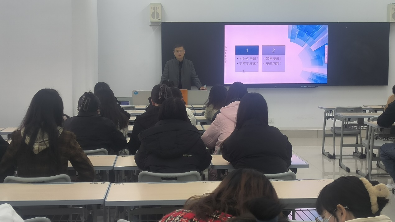 会上,王满堂向在考研初试取得好成绩的同学表示祝贺,充分肯定了同学们前期所付出的努力。随后,从考研复试内容、形式、注意事项和如何做好复试准备工作等方面,结合专业特点,深入浅出地分享了看法与经验,鼓励同学们树立信心争取一战成硕。随后,郝雅博士结合自身经历,从个人简历、自我介绍、复试专业科目准备、复试技巧、面试要点、导师选择、考研调剂等方面对2024年考研员工做了耐心细致的指导,并对同学们提出的问题进行了一一解答。