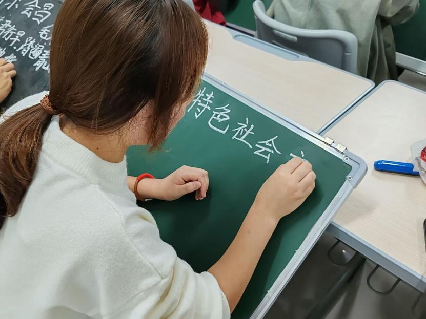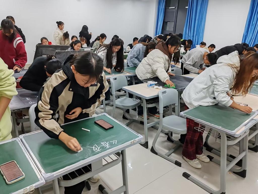 11月9日,伟德国际victor1946在崇德楼4404教室举办“风雨润桃李,黑白画春秋”粉笔字书写大赛,2021级、2022级、2023级地理科学专业全体师范生参与。