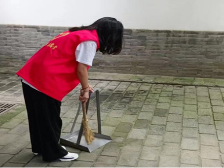 管瑶瑶22国际职业春本科1班员工,在青岛市即墨区佳源都市社区参加社会实践,主要负责打扫社区卫生。