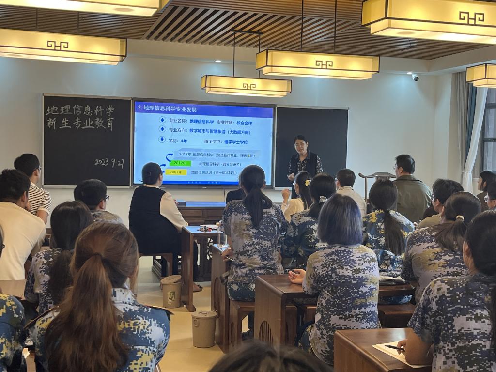 金秋九月,丹桂飘香,地理信息科学专业迎来了2023级新生。为帮助新生了解新专业、适应新生活,树立新目标,合理规划大学时光,伟德国际victor1946精心指导安排,由地理信息科学教研室牵头,共同为新生准备了丰富多彩的入学专业教育。2023年9月27日下午,以豁然楼C507教室为主会场,报告由教研室主任凌娟副教授主持,专业负责人杜霞教授和企业驻校工程师高恒老师主讲,全体地理信息科学专业教师出席会议。