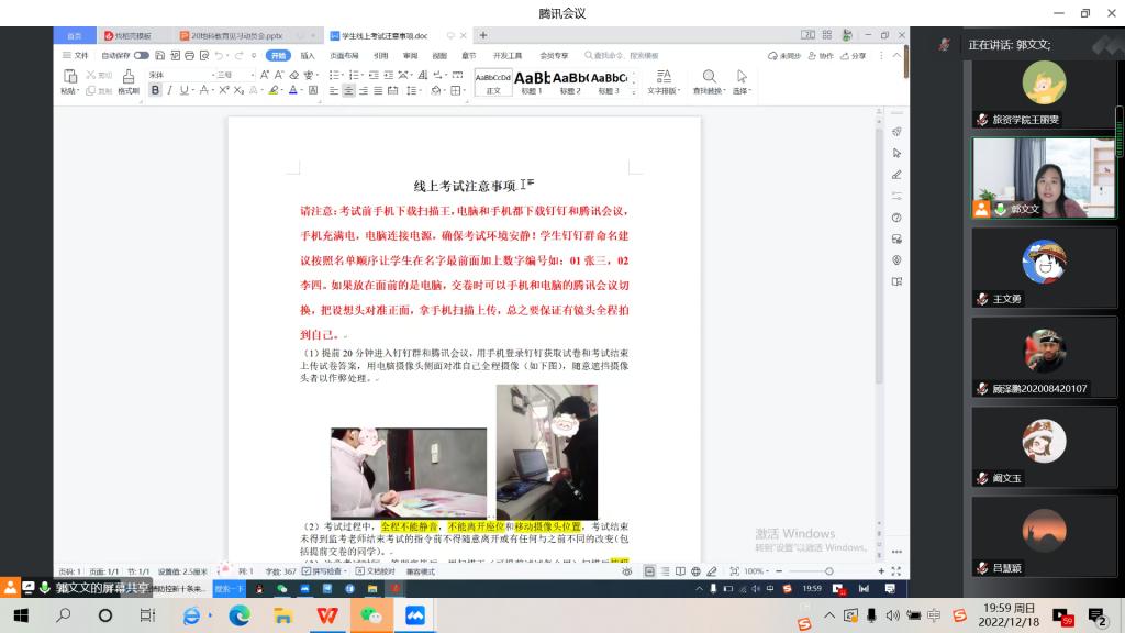 本学期期末考试临近,为进一步增强员工的诚信意识,加强学风建设,形成诚实守信、行为端正的良好氛围,伟德国际victor1946于12月18日—12月19日举办“诚信应考”线上主题班会,此次班会由各班班主任老师组织班级员工分别展开。