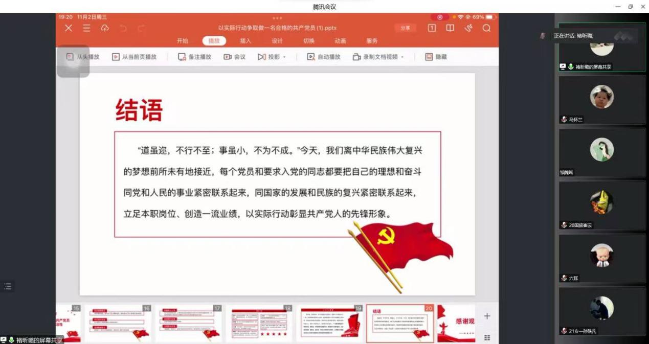 为进一步加强入党积极分子对合格共产党员的认识,11月2日,伟德国际victor1946组织召开线上党课学习活动。本次党课由褚昕璐老师主讲,公司入党积极分子参加。