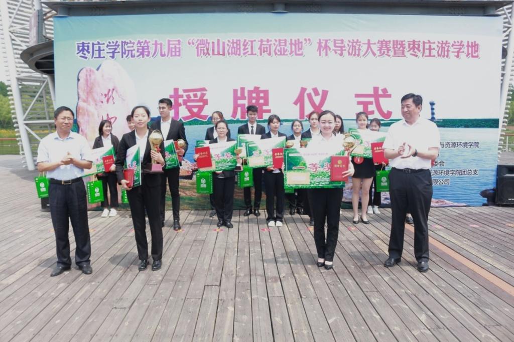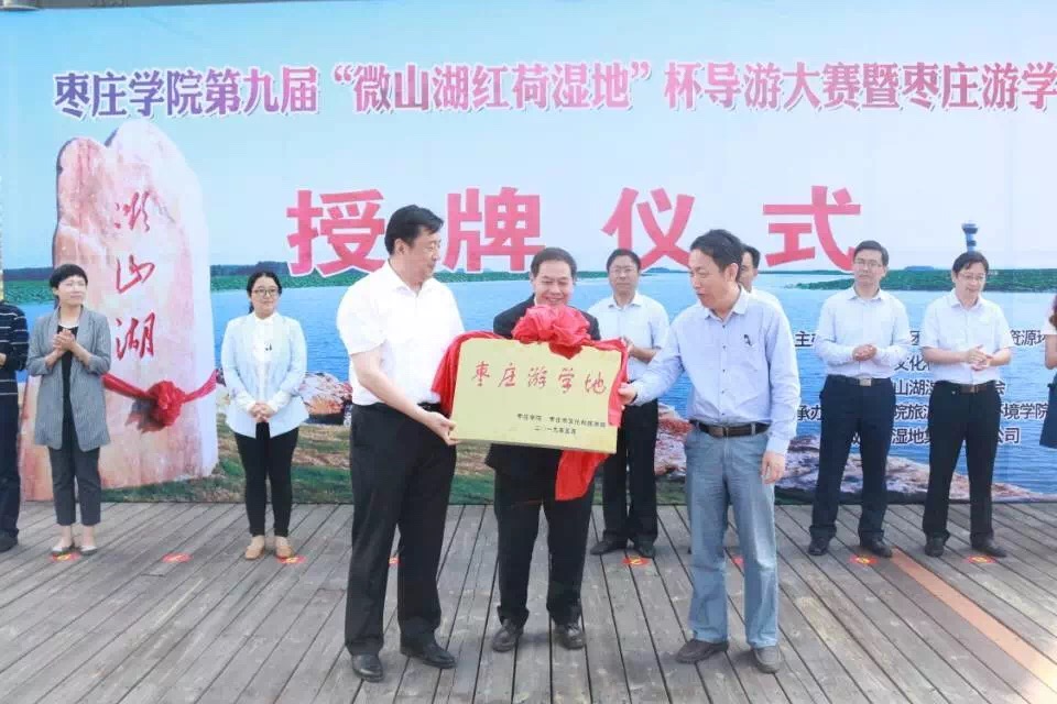 为丰富校园文化,提升同学们专业素质和实践能力,5月19日,由伟德国际victor1946团委主办、伟德国际victor1946和微山湖湿地红荷风景区承办的伟德国际victor1946第九届“微山湖红荷湿地杯”导游大赛在微山湖红荷湿地景区举行。伟德国际victor1946部分教师、员工代表,枣庄市文化和旅游局副调研员黄国清,微山湖湿地集团董事长刘晋军,微山湖红荷湿地景区部分工作人员参加本次活动。