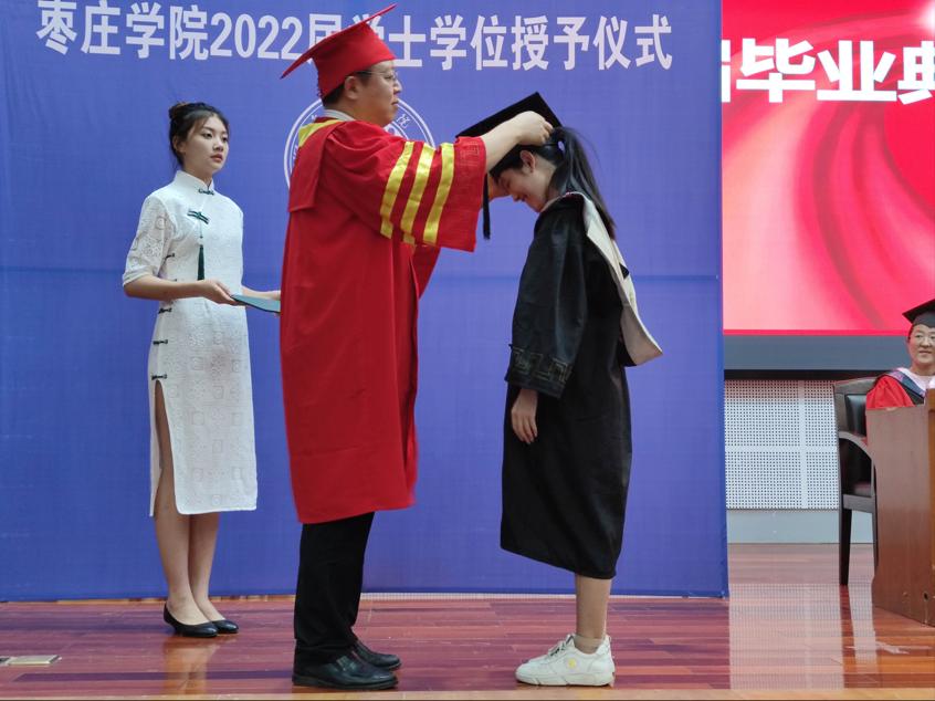 在庄严的国歌声中,学士学位授予仪式拉开序幕。仪式上,经理王满堂致辞,他对毕业生提出三点希望:一是要不断创新和进取,以拼搏奋斗应对挑战,赢得未来;二是要多与公司、公司联系,枣院的大门永远为同学们敞开;三是要心怀祖国,勇于肩负时代使命,投身于祖国建设之中。随后,副经理张大文宣读2022届本科毕业生学士学位授予名单。