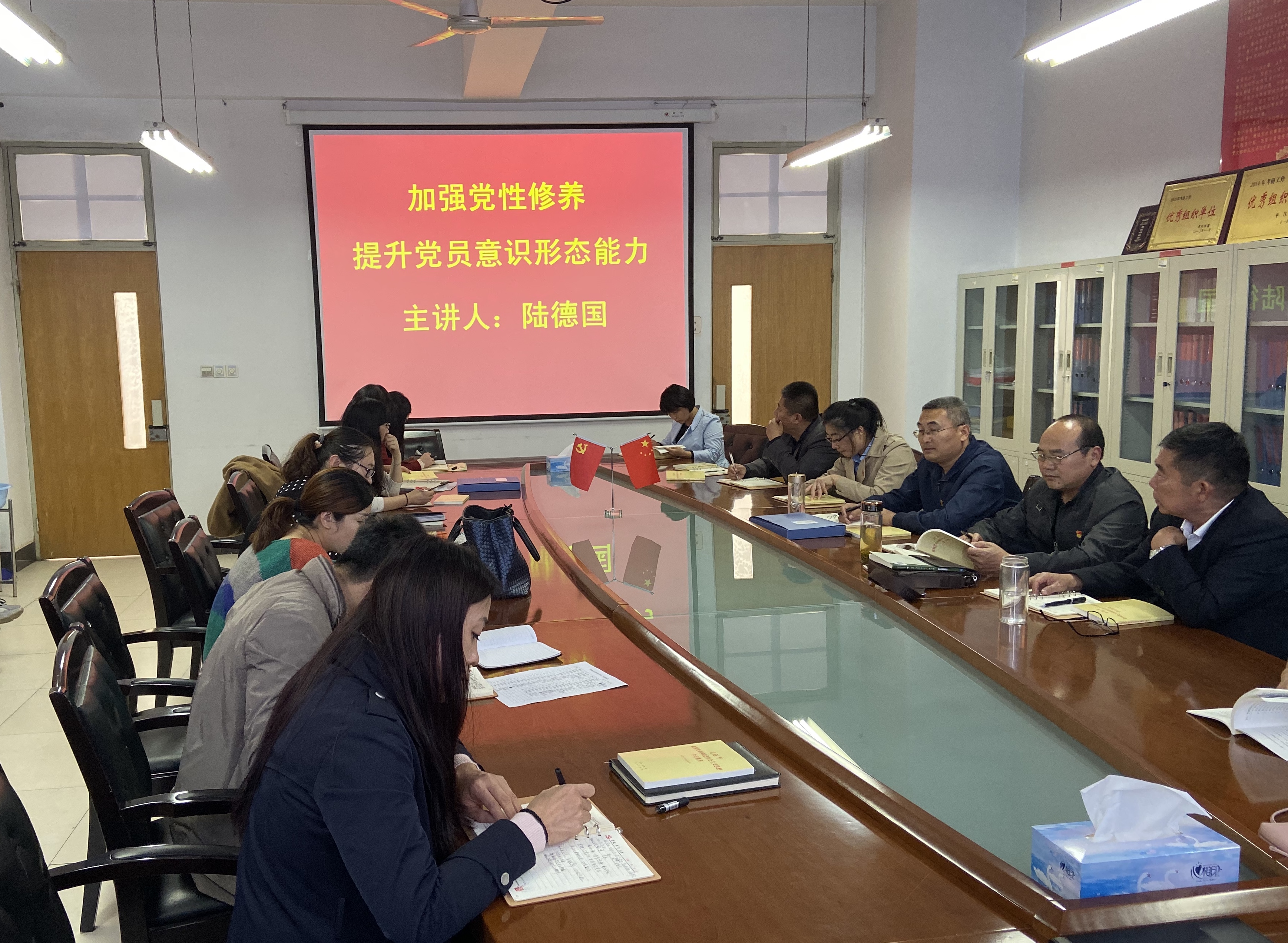 10月23日,伟德国际victor1946在公司党员活动室召开全体党员大会,党总支书记陆德国面向全公司党员讲了题为《加强党性修养,提升党员意识形态能力》的党课。