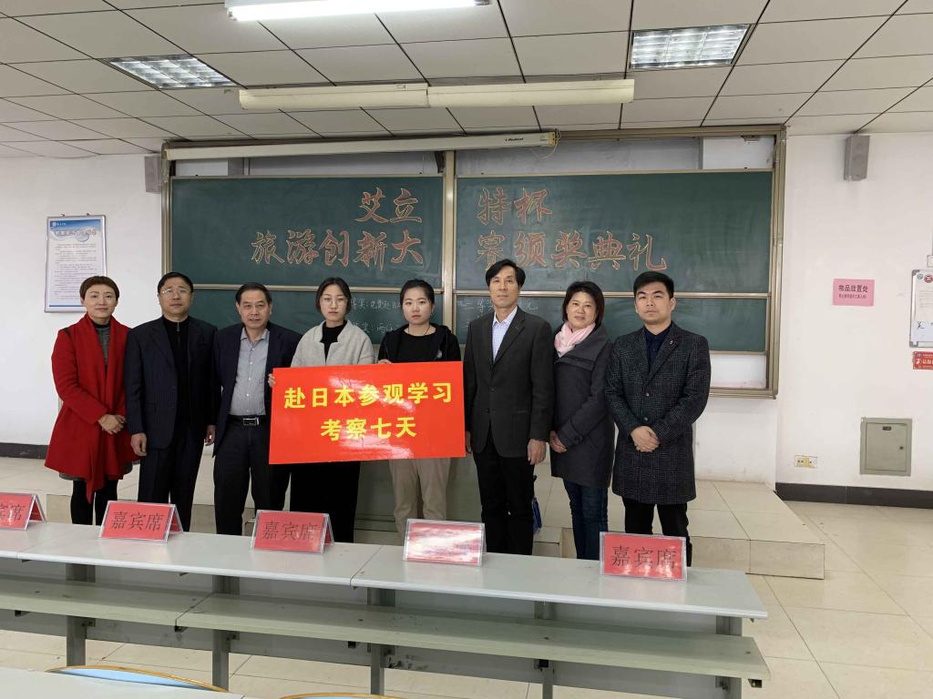 12日,在理工楼2505举办“艾立特”杯旅游创新大赛颁奖典礼,北京艾立特教育有限公司董事长谢龙飞等公司负责人及公司领导老师出席并为获奖员工颁奖。
