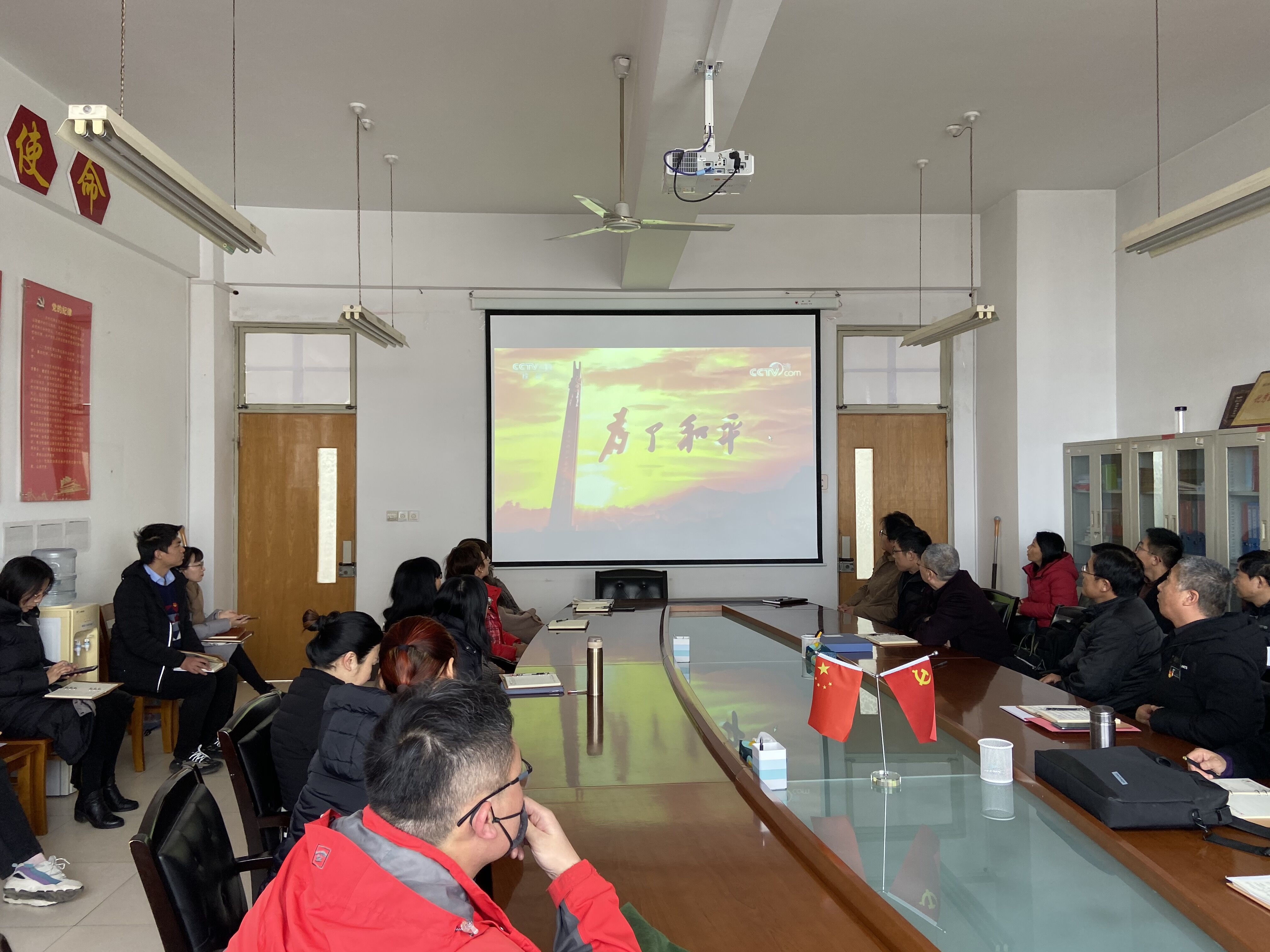 12月2日下午,伟德国际victor1946组织全体教师在2514会议室观看大型电视纪录片《为了和平》。