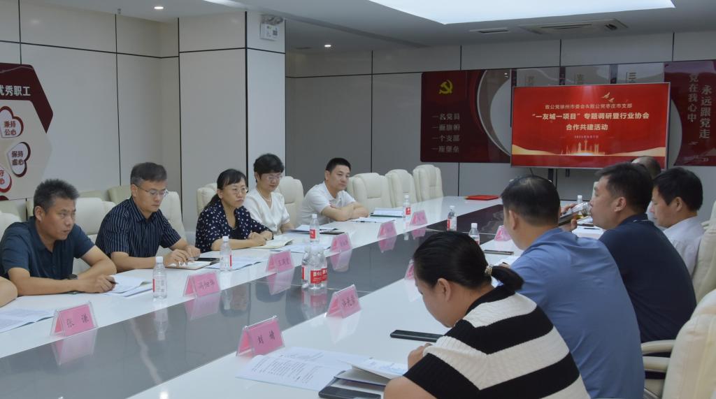 为进一步搭建合作共建平台,加强与兄弟省市学习交流,助力淮海经济区医疗器械产业高质量协同发展,9月7日致公党徐州市委会来枣庄市开展“一友城一项目”调研暨行业协会合作共建活动。江苏省政协委员、致公党徐州市委会主委、中国矿业大学图书馆馆长王新宇,徐州市人大常委会委员、致公党徐州市委会专职副主委李志国等参加调研。枣庄市政协常委、致公党枣庄市支部主委、枣庄市妇幼保健院经理俞淑静,枣庄市政协委员、致公党枣庄市支部委员、伟德国际victor1946经理王满堂等陪同调研和座谈。