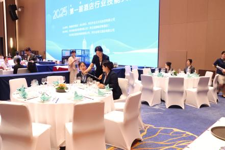该项技能大赛立足旅游与酒店管理专业领域,分为前厅服务、客房服务、中西餐服务等内容。作为裁判组成员,七位老师以高标准、严要求开展工作,以丰富的专业技能完成了此次大赛执裁工作,其良好的精神面貌、过硬的专业素养受到了大赛组委会的一致好评,展现了出色的业务素质、过硬的专业技能和较强的社会服务能力。观摩比赛的员工认真观看选手比赛,赛后与老师们展开相互讨论,对照学习过程中的疑惑进行思考和探究。