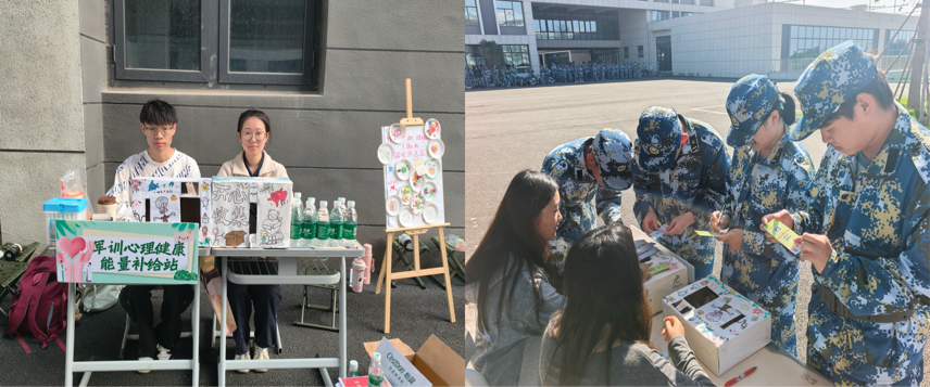 辅导站采取“流动服务+定点接待”相结合的工作模式,每日在军训休息时段进驻训练场,通过摆放宣传展板、发放心理调适手册等方式,主动为新生提供心理服务。在服务内容上,辅导站聚焦新生军训期间的核心心理需求:针对部分员工因高强度训练产生的疲惫与焦虑,提供一对一情绪疏导;面对新生因陌生环境引发的适应难题,开展同伴互助交流活动;同时还通过趣味心理小游戏、压力释放小技巧讲解等形式,帮助新生迅速调整心态、融入集体。