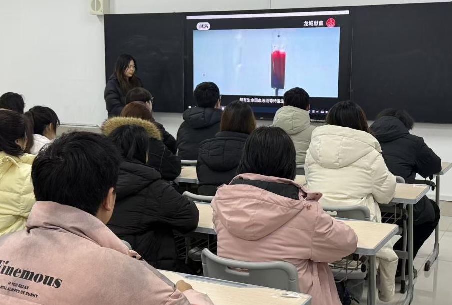 活动伊始,宣讲人先阐释无偿献血的公益价值——既是利人利己的善举,也是青年践行社会责任的体现。随后播放精心准备的主题视频:画面里清晰呈现了血液采集、检测、储存的全流程,医护人员的严谨操作,献血者温暖的笑容,以及受助患者重获新生的喜悦,让大家直观了解献血过程。视频结束后,现场发起无偿献血倡议,宣讲人宣读倡议书后,同学们热情高涨,纷纷在倡议书展板上郑重签名,承诺在符合年龄、身体条件的前提下,主动参与无偿献血。最后,宣讲人针对大家关心的献血年龄限制、间隔时长、特殊体质适配性等问题逐一答疑,进一步丰富同学们的献血知识储备。