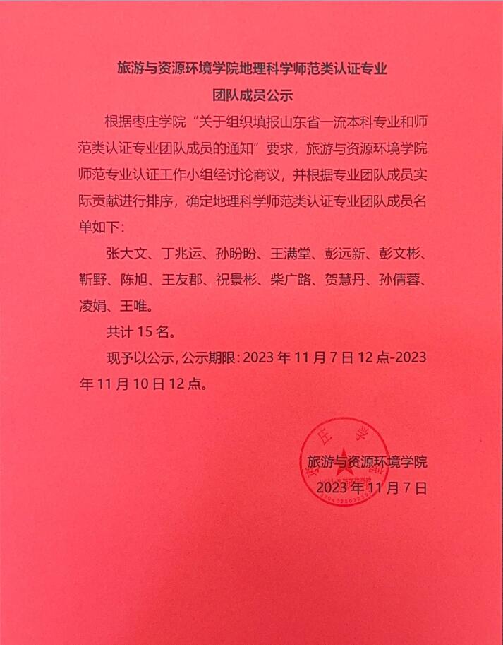 伟德国际victor1946地理科学师范类认证专业团队成员公示