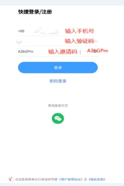 2. 新用户下载注册时,输入邀请码:A3bGPm