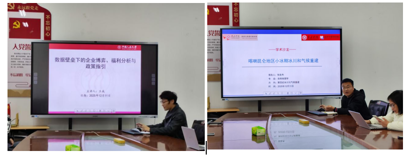 此次沙龙紧密围绕“数据”、“环境”与“治理”三大核心关键词展开。伟德国际victor1946张宏杰博士、经济管理公司王成老师分别作了题为《喀喇昆仑地区小冰期冰川气候重建》《数据壁垒下的企业博弈、福利分析和政策指引》的学术报告。两场报告虽分属不同学科领域,却在此次沙龙的主题下产生了深刻的共鸣与对话。无论是重建历史气候所需的自然数据解码,还是优化当下经济治理面临的社会数据规制,都凸显了“数据”作为核心研究对象和研究工具的双重属性,以及“治理”思维在应对环境与社会复杂性中的关键作用。