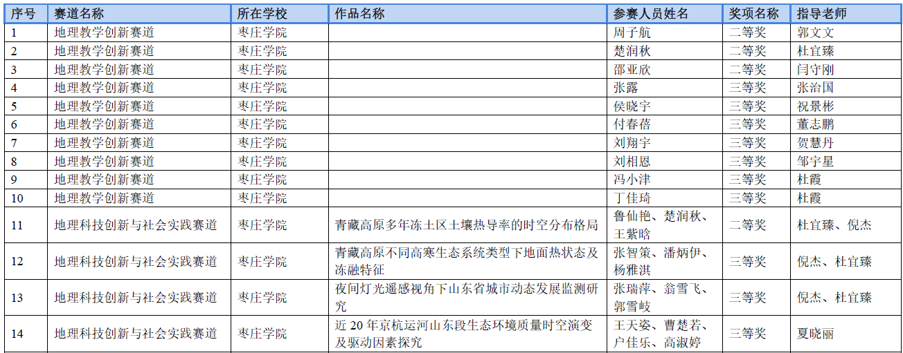 近日,第十七届山东省老员工科技节——山东省老员工地理创新大赛决赛成绩公布。公司地理科学专业学子取得了地理教学创新赛道二等奖3项,三等奖7项,地理科技创新与社会实践赛道二等奖1项,三等奖3项的优异成绩,充分彰显地理师范专业员工的职业素养与昂扬风采。