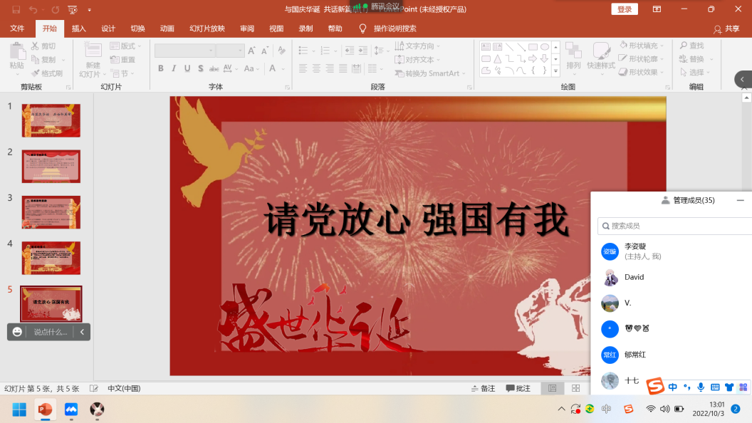 为庆祝祖国华诞,迎接党的二十大胜利召开,10月3日,伟德国际victor1946各班级开展“与国庆华诞,共话新篇章”线上主题团日活动。