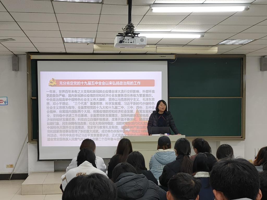 大会伊始,邵书记向同学们传达了党的十九届六中全会精神,从全会内容、全会形式、中国共产党的的辉煌成就以及认真学习贯彻六中全会精神的重大意义等方面展开阐释。邵书记指出,要以更高的政治站位和更强的政治自觉,深刻把握全会精神的丰富内涵和实践要求,不断增强四个意识、坚定四个自信、做到两个维护,立大志、明大德,成大才、担大任,不负时代、不负韶华,努力成为堪当大任的时代新人。