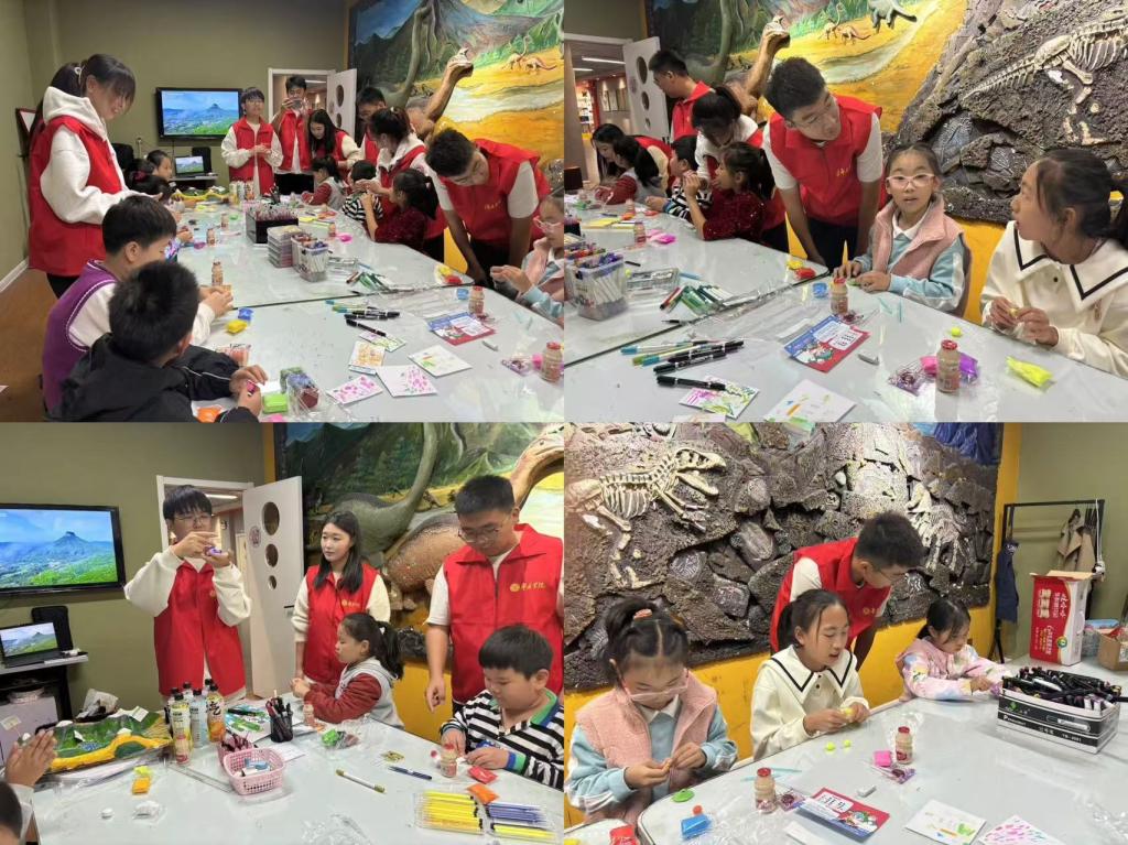 为实现高校资源与社区需求的有效对接,实践团依托旅游管理专业,开展小小红色讲解员培训,向小朋友们传授讲解技巧,通过寓教于乐的情景模拟,进一步了增强小朋友们对家乡的认同感和归属感,促进他们为祖国的繁荣发展贡献自己的力量。同时,实践团发挥地理科学专业优势,利用橡皮泥等工具带领小朋友们制作地理模型,使小朋友们对家乡和祖国的地理环境有了更加直观和深入的了解。