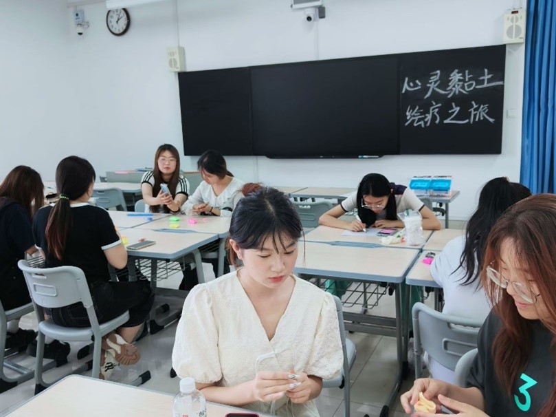 活动伊始,主持人向同学们介绍了黏土绘疗的基本知识和技巧,以确保活动顺利进行。随后,同学们现场组队、集思广益、明确分工。随着计时开始,活动正式进入创作环节,同学们聚精会神地投入到自己的作品中,通过揉、捏、画等各种手法,创作出一系列温馨的家庭场景、可爱的小动物等栩栩如生的粘土作品,这些作品不仅展示了同学们的创意和才华,更体现了同学们的动手能力和实践水平。活动最后,主持人呼吁同学们关注自己的心理健康问题,携手共同营造一个健康、积极、向上的校园氛围。