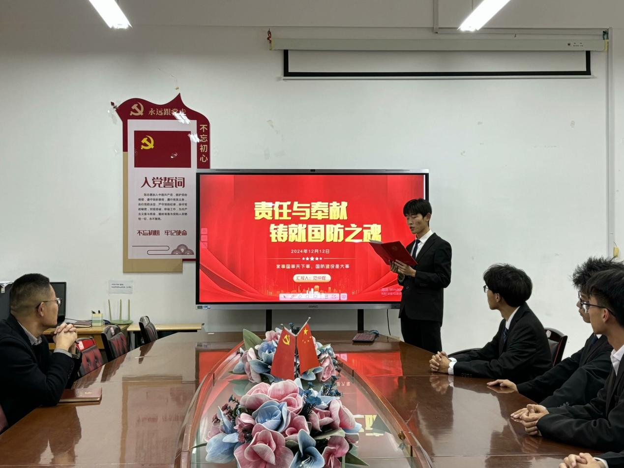 为进一步强化国防教育,引导青年员工厚植家国情怀,12月12日,伟德国际victor1946员工党支部在豁然楼A415会议室开展“爱我国防”主题演讲比赛,辅导员老师范增良、周赢、冯淑鹃出席本次活动,公司员工党员积极参加。