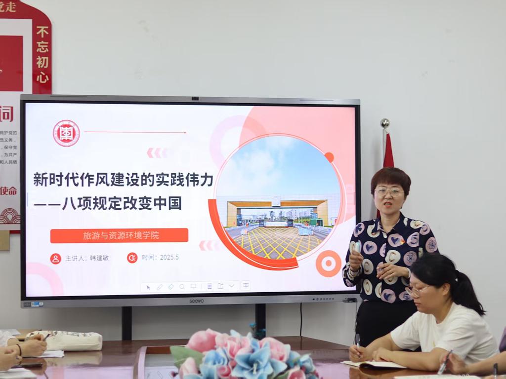 为深入贯彻落实中央八项规定精神,扎实推进作风建设,5月21日,伟德国际victor1946在豁然楼A415会议室召开新时代作风建设的实践伟力——八项规定改变中国主题教育党课活动。此次党课由公司党委副书记韩建敏主持,公司全体教师党员参与学习。